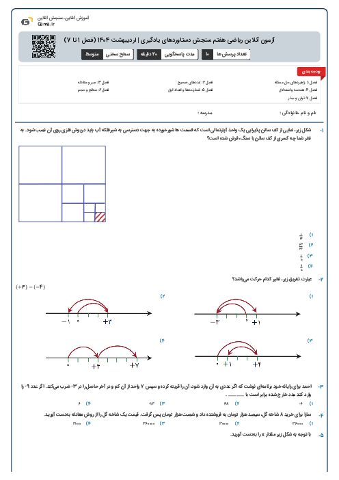 آزمون آنلاین ریاضی هفتم سنجش دستاوردهای یادگیری | اردیبهشت 1404 (فصل 1 تا 7)