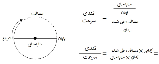 اتومبیلی میدانی را تا نیمه دور میزند نسبت تندی اتومبیل به سرعت آن پس از طیکردن این مسیر چقدر است؟ (عدد $\pi $ را 3 در نظر بگیرید)