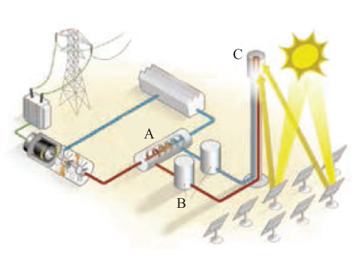 شکل زیر نمایی از فناوری پیشرفته برای تولید انرژی الکتریکی از پرتوهای خورشیدی را نشان میدهد. کدام گزینه درست است؟