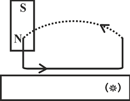 آهنربایی را به شکل نشان داده شده، روی میله آهنی قرار داده و میکشیم تا میله آهنی تبدیل به آهنربا شود. اگر بعد از این کار میله آهنی را از یک نخ بسیار سبک آویزان کنیم، قسمت نشان داده شده در شکل کدام قطب از زمین را نشان خواهد داد؟ و به این روش، روش . . . گفته میشود.