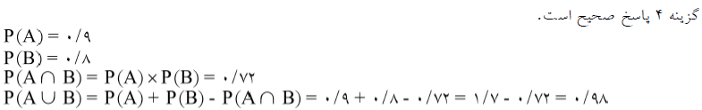 احتمال موفقیت عمل جراحی برای شخص $A$ برابر 0/9 و برای شخص $B$ برابر 0/8 است. با کدام احتمال، لااقل عمل جراحی برای یکی از این دو نفر، موفقیت آمیز است؟