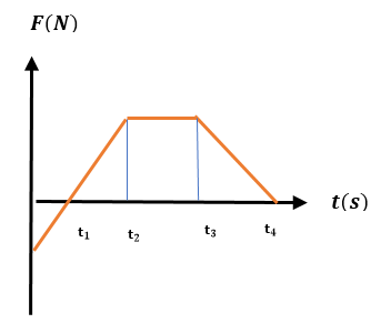 بردار تغییرات تکانه در ${{t}_{2}}$ تا ${{t}_{3}}$ در جهت مثبت محور x بوده است و نیرو در حال افزایش