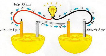 با رسم شکل نشان دهید که چگونه میتوان با استفاده از انرژی دو لیموترش لامپی را روشن نمود.