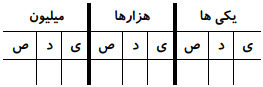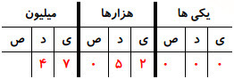 عدد «چهل و هفت میلیون و پنجاه و دو هزار و ده» را در جدول ارزش مکانی قرار دهید.