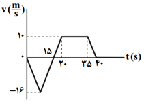 نمودار سرعت - زمان متحركی كه بر خط راست حركت میكند، مطابق شكل است. در كداميک از زمانهای زير، فاصلۀ متحرک از نقطۀ شروع حركت $(x={{x}_{{}^\circ }})$ بیشتر است؟