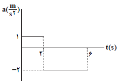 نمودار شتاب ـ زمان متحركی كه در امتداد محور x از حال سكون به راه میافتد، مطابق شكل است. جابهجایی متحرک از لحظۀ t=0 تا لحظهای كه سرعت آن صفر میشود، چند متر است؟