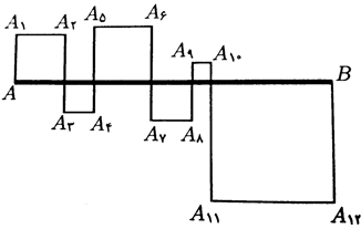 در شکل زیر، مربع ها روی قطعات پاره خط AB تشکیل شده اند. طول پاره خط AB ، 24 سانتی متر است. طول خط شکسته ی AA1A2A3…A11A12B چقدر است؟