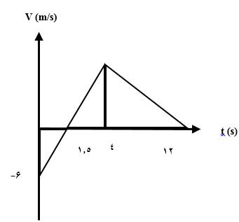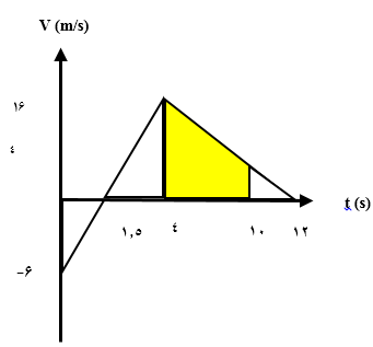 نمودار سرعت-زمان متحرکی مطابق شکل زیر است. مسافت طیشده توسط متحرک در لحظهای که متحرک شروع به کاهش سرعت میکند تا 2 ثانیه قبل از ایستادن چقدر است؟