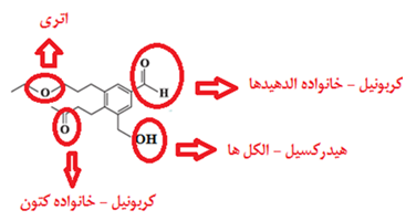 ب) گروههای عاملی موجود در ترکیب را مشخص کرده و نام آنها را بنویسید.