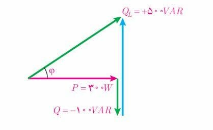 مثلث توان یک مدار RLC سری بصورت مقابل است مقدار توان موثر مدار چقدر است؟