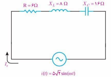 در مدار الکتریکی RLC سری روبهرو مقدار مقاومت ظاهری مدار چقدر است؟