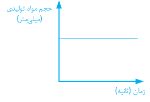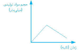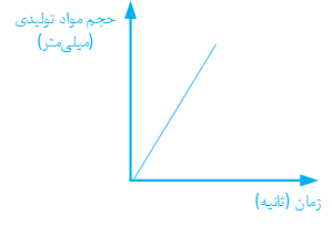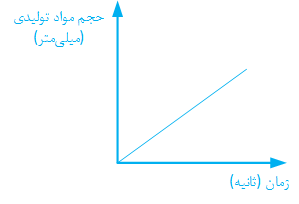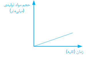 نمودار زیر حجم مواد تولید شده طی یک واکنش شیمیایی را با گذشت زمان نشان میدهد. با اضافه کردن کاتالیزگر مناسب به مواد اولیه کدام نمودار این تغییر را به درستی نشان میدهد؟