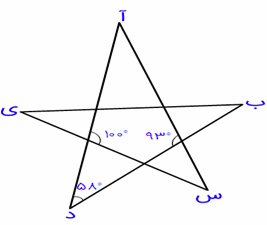 در شکل زیر اندازهی زاویهی «س» با توجه به اندازههای روی شکل چقدر است؟