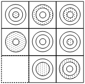 شکل اصلی در همه قسمت‌ها سه دایره هم مرکز است. با روی هم قرار دادن شکل‌های هر ردیف، کل تصویر به صورت خال خالی در می‌آید. در ردیف سوم، با روی هم قرار دادن دو شکل سمت راست و وسط کل تصویر خال خالی خواهد شد. بنابراین شکل سمت چپ باید بدون رنگ باشد (گزینه 2). با قرار دادن سایر گزینه‌ها روی دو شکل سمت راست و وسط، باز هم کل تصویر نقطه نقطه خواهد شد، اما چون در هر یک از ردیف‌های اول و دوم قسمت‌های نقطه نقطه اشتراکی ندارند، در ردیف سوم نیز باید این مورد رعایت شود.