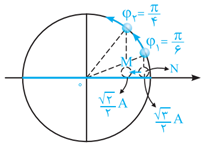 از طرفی مدت زمان لازم برای این تغییر فاز از شروع حرکت تا نقطهٔ $N$، برابر $\Delta t=\frac{T}{12}$ میباشد (چرا؟). بنابراین میتوان نوشت: