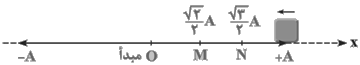 گام دوم: در نقطهٔ $M$ مکان نوسانگر برابر ${{x}_{M}}=\frac{\sqrt{2}}{2}A$ بوده و جهت حرکت آن به سمت مرکز میباشد، بنابراین به یاد $\frac{\pi }{4}$ و مشتقات آن میافتیم: