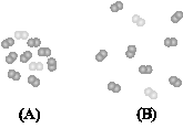 ب) انرژی گرمایی B بیشتر است؛ زیرا مولکولهای آن بیشتر است.