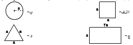 فرض کنید بخواهیم روی یک سطح شنی، ستونهایی از آهن توپر با ارتفاع یکسان و سطح مقطعهای مشخص شده در زیر قرار دهیم. در کدام حالت بهترتیب از راست به چپ بیشترین و کمترین فرورفتگی ستون در سطح شنی اتفاق میافتد؟