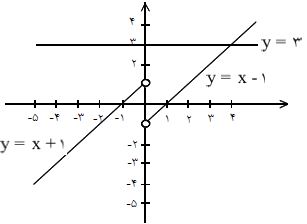 نمودار تابع زیر را رسم کنید، سپس به ازای $y = 3$ معادلههای به دست آمده را به روش هندسی و جبری حل کنید.