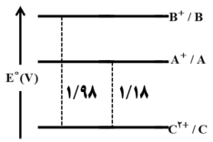 در نمودار زیر هر خط نشاندهنده نیروی الکتروموتوری یک سلول گالوانی است. اگر بدانیم A نیمسلول SHE است: