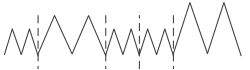 امواج لرزهای هرگاه از لایههای کم تراکم بگذرند به صورت امواجی با فاصلهی بیشتر و طول بلندتر و هرگاه از لایههای متراکم بگذرند با فاصلهی کمتر و کوتاهتر ثبت میشوند. در صورتی که زلزلهای در لایهی سطحی زمین اتفاق افتاده و امواج آن تا عمق زمین برسد. در این صورت کدام گزینه به صورت فرضی عبور این امواج از لایههای زمین را نشان میدهد؟