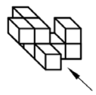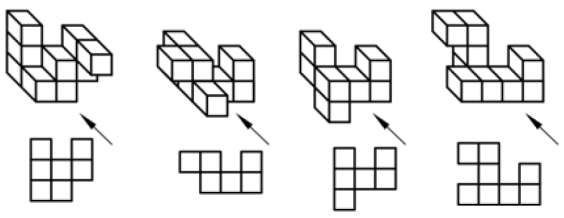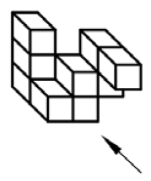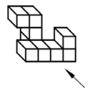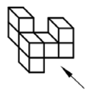 به کدام یک از حجمهای زیر اگر از جهت فلش نگاه کنیم، تعداد مربع کوچک بیشتری میبینیم؟