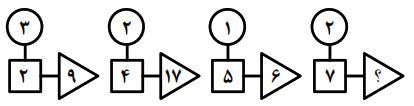 بین اعداد در هر کدام از اشکال زیر، ارتباط یکسان و مشترکی برقرار است. به جای علامت سؤال، کدام عدد باید قرار گیرد؟