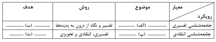 با مقایسهٔ دو نوع جامعهشناسی تفسیری و انتقادی، جدول زیر را تکمیل کنید.