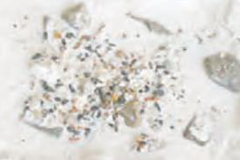 1) دو لیوان آب، مقداری گچ، کمی شن و سنگریزههایی را درون یک کیسهی پلاستیکی ضخیم ریختند.