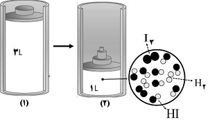 الف) مشخص کنید شمار مولهای HI در ظرف (2) نسبت به ظرف (1) چه تغییری کرده است؟ چرا؟