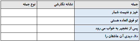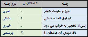 نوع جملههای زیر را مشخص کنید و نشانهٔ نگارشی مناسب را قرار دهید.