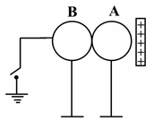 مطابق شکل زیر، کره های فلزی A و B روی پایههای عایق قرار دارند. لحظهای کلید را وصل میکنیم و سپس آن را قطع میکنیم. بعد میلهی باردار را دور میکنیم و در آخر دو کره را از هم جدا میکنیم. در این صورت . . . . (سیم رساناست.)