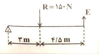 در اهرم نشان داده شده، اندازه نیروی مقاوم 150 نیوتن است. در این صورت اندازه نیروی محرک (E) باید چند نیوتن باشد تا اهرم در حالت تعادل قرار گیرد؟