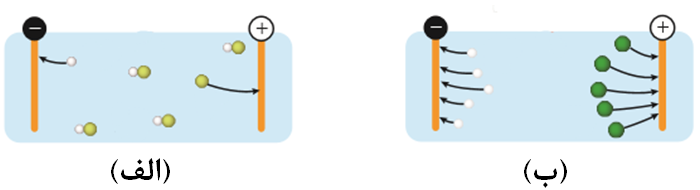 ب) در دما و غلظت یکسان از محلولهای الف و ب، هر دو محلول دارای رسانایی الکتریکی هستند.