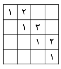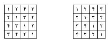 چند مربع لاتین $4\times 4$ وجود دارد که برخی از خانههای آن به شکل مقابل پر شده باشند؟