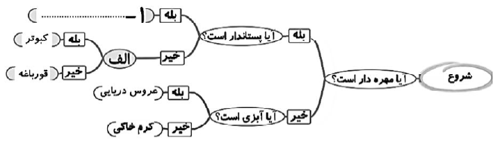 دانش آموزی برای تعدادی از جانداران کلید شناسایی زیر را طراحی کرده است.