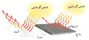 سطح آینه؛ چون سطوح صاف و براق بیشتر انرژی تابشی را بازتاب میکنند و کمتر جذب میکنند.