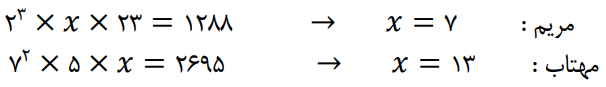 مریم و مهتاب دو تمرین از کتاب ریاضی انتخاب و حل کردند. با توجه به پاسخهای آنها کدام گزینه صحیح است؟