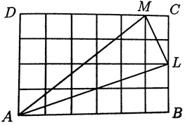 مستطیل ABCD در شکل زیر از 24 مربع کوچک که ضلع هر کدام برابر یک است ساخته شده است. مساحت مثلث ALM کدام است؟