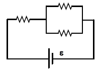 در شکل زیر، مقاومتها یکسان و توان خروجی باتری 4 وات است. اگر این 3 مقاومت را به صورت موازی به دو سر همین باتری ببندیم، توان خروجی چند وات میشود؟