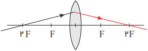 در شکل زیر، با توجه به نوع عدسی و پرتوهای تابش، شکل را کامل کنید.
