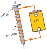 یک میخ آهنی را به کمک سیم پیچ و جریان برق به آهنربا تبدیل کردهایم، دو راه برای قویتر شدن آهنربا پیشنهاد کنید.