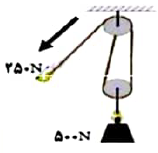 در قرقره مرکب روبرو اگر طناب به اندازه 2 متر به سمت پایین کشیده شود نیروی مقاوم چه مقدار جابجا میشود؟ (از جرم قرقرهها و نیروی اصطکاک چشمپوشی شود.)