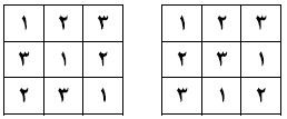 بررسی کنید، آیا دو مربع لاتین $3 \times 3$ روبهرو متعامدند؟