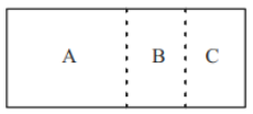 صفحه مستطیل شکل مطابق شکل زیر با دو برش از روی نقطه چین ها به دو مستطیل کاملا یکسان تبدیل می شود .و از کنار هم قرار دادن سه قطعه A و B و C یک مربع حاصل می شود. $\frac{3}{2}$ مساحت مستطیل A چند برابر مساحت مستطیل B است؟