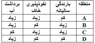 با توجه به جدول زیر، انتظار دارید ضخامت لایهی آبدار (آب زیرزمینی) در خاک کدام منطقه بیشتر باشد؟