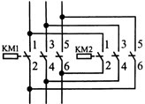 کدامیک از شکلهای زیر برای مدار قدرت تغییر جهت گردش موتور سهفاز مناسب است؟