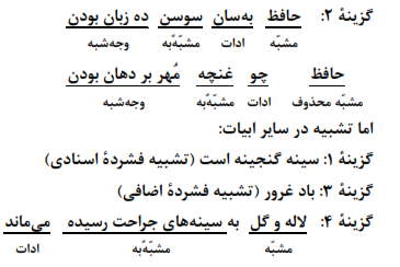 در کدام بیت همهی ارکان تشبیه به چشم میخورد؟