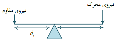 در شکل داده شده، طول میله اهرم 160cm است اگر فاصلهٔ جسم تا تکیهگاه ${d_1}$ و مزیت مکانیکی این اهرم برابر 3 باشد. طول بازوی محرک چند سانتیمتر است؟ (از اصطکاک و وزن میله، صرف نظر میشود)