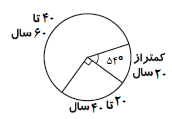 تعداد بازدید کنندگان از یک سالن نمایش بر اساس گروه سنیهای مختلف در نمودار دایرهای زیر مشخص شده است. چند درصد بازدید کنندگان بین 40 تا 60 سال سن دارند؟